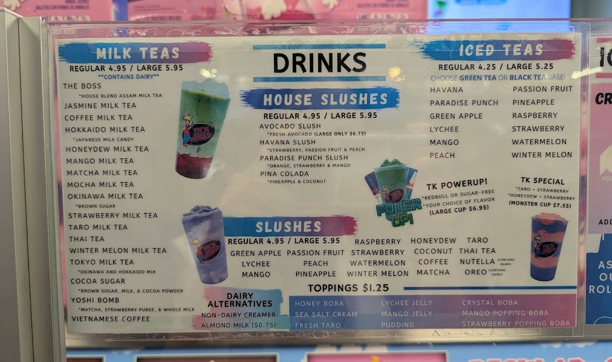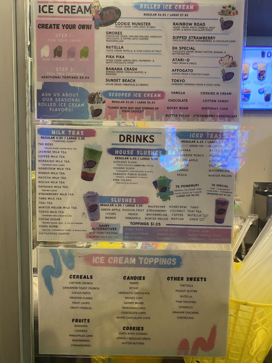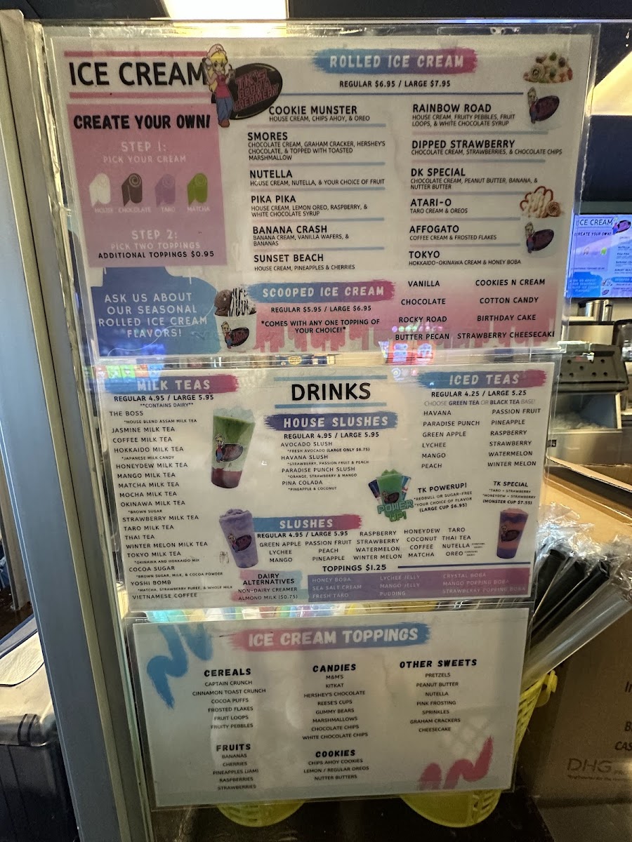 If ice cream isn't your calling, the selection of milk teas won't disappoint. Featuring fan favorites like Honeydew Milk Tea and Mango Milk Tea, each is crafted to perfection, offering an inviting sweetness that will leave you wanting more. Priced at US$5.75, these drinks serve as the perfect accompaniment to your frozen delights. And let’s not forget the refreshing iced teas and house slushes, like the tangy Paradise Punch or the creamy Pina Colada, both priced at US$5.95.